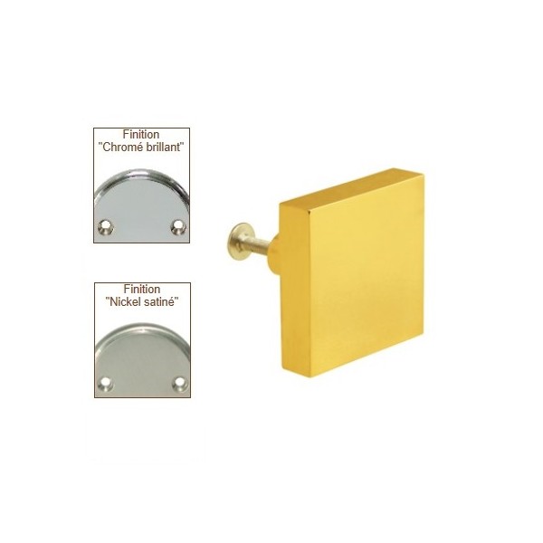 Option : Bouton carré 25x25mm - Laiton chromé Bouton carré 30x30mm - Laiton chromé Bouton carré 25x25mm - Laiton nickel satiné Bouton carré 30x30mm - Laiton nickel satiné